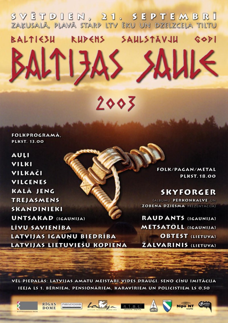 Svētdien, 21. septembrī Zaķusalā notiks baltiešu folk/pagan/metal godi Baltijas Saule 2003 (Afiša).