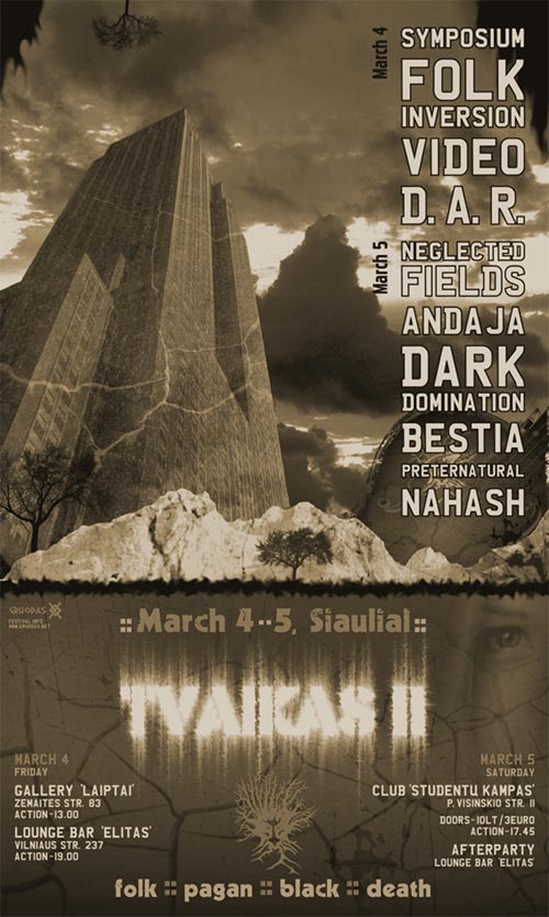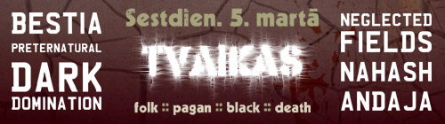 No 4. līdz 5. martam Šauļos (Lietuva) notiks otrais festivāls «Tvaikas II», piedaloties arī latviešu grupām «Preternatural», «Dark Domination» un «Neglected Fields».