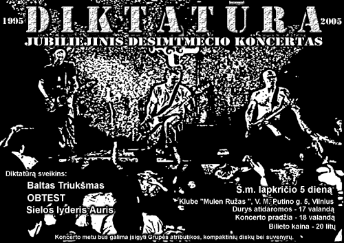 5. novembrī, klubā Mulen Ruzas (Lietuva, Viļņa, V.M Putino 5) notiks lietuviešu grupas "Diktatūra" 10 gadu atzīmēšanas koncerts.