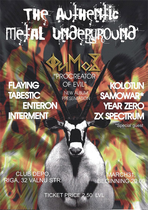 Nu ta beidzot tikšu iečekot sen neredzētos Fimoz(līdz Salamandrai nokļūt ir diezgan problemātiski), un vēl mani mīlulīši Tabestic Enteron ar spēcīgu frontmenu priekšgalā. Pat Džeimss Hetfīlds nosarktu. Vai kaut kas var būt labāks?? Manis pēc tur var visādi ZX Spectrum kaut 10 reiz spēlēt, ka tik 1 reiz pa Fimoz.