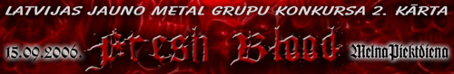 Piektdien, 15. septembrī uz kluba "Melnā Piektdiena" skatuves kāps kārtējās, otrās konkursa „Fresh Blood“ kārtas dalībnieki – grupas Ocularis Infernum, Year Zero, Bloodstone, Excelsiors un Trauma Moralis!