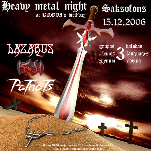15.Decembrī Rīgā, mūzikas klubā "Saksofons" (Rīgā,Stabu ielā 43) notiks pasākums Heavy Metal Night, kurā tiks atzīmēta grupas Krovi dzimšanas diena.