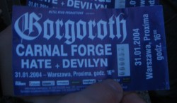 Gorgoroth...starp citu, naakamajaa dienaa shiem bij tas slavenais koncis Krakovaa :) ..biju jau makjeniit atpuuties un vareeju atstaat visus speekus pie shiem, jo bij peedeejais koncis. pirmaas paaris dziesmas taa iisti neaizgaaja, bet tad taalaak..... tad bija nezheeliigi..... elles vaarti paveeraas un iists true black viesulis sagriezaas... asinsstindzinoshs vokaals, no smadzeneem peedeejaas sajeegas paliekas izdauzoshas bungas, un uz speeku izturiibas robezhas pachku purinaat liekoshas gjitaaras :) smagi bija... bet kaa iista medusmaize peec ieprieksheejaas dienas Carpathian Foresta sviestoshanaas.