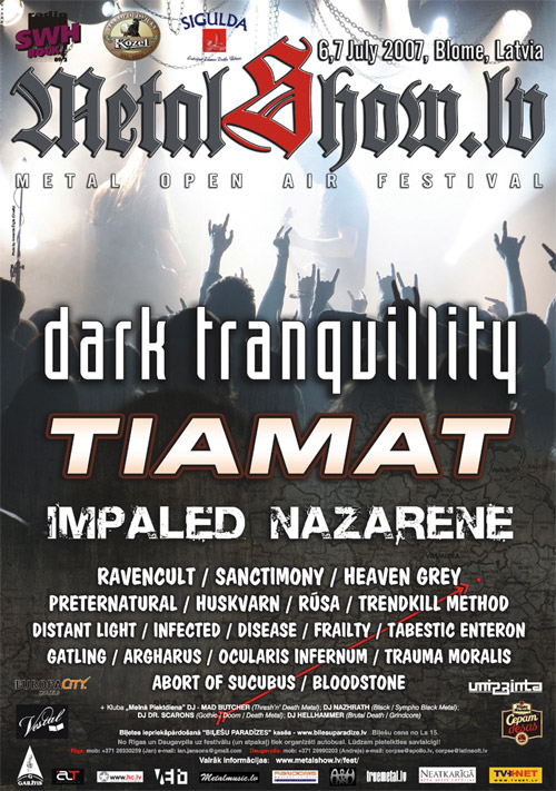 TIAMAT spēlē 06.07.07. jo jau nākamajā dienā viņīem ir koncerts Maskavā. Interesenti ir ar IMPALED NAZARENE - viņu mājaslapā ir norādīts, ka viņi Blomē spēlē "6. 7. 2007.", bet MySpace.com viņu informācijā rakstīts "jul. 7. 2007." tā kā nav īsti saprotams, kad viņi īsti tur uz skaruves kāpj... RAVENCULT spēlē 06.07., un DARK TRANQUILLITY 07.07. - ar tiem viss skaidrs.