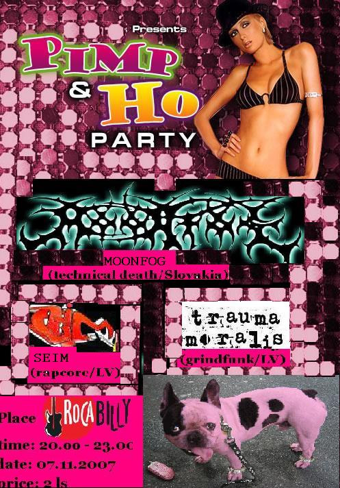 Trešdien, 7. novembrī klubā "Rocabilly" norisināsies neordinārs smagās mūzikas pasākums brīvā gaisotnē - "Pimp&Ho party", ar trīs dažādu, gan pašmāju, gan ārzemju grupu uzstāšanos, konkursiem, karaoki dzīvās mūzikas pavadījumā un citiem pigoriem.