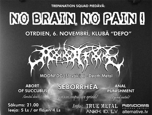 Seborrhea (latviski sakot -Blaugzna- nevis caurejas paveids kā es biju iedomājies ;) patīkami pārsteidza - neko īpašu negaidīju, bet džeki rukāja ļoti labā līmenī, vokālists demonstrēja lielisku kviecienu, īdienu u.c. grainda „dziedāšanas” elementus. Grinds - tas ir jautri (ja labi māk un grib). Drīz iznāks viņu CD, tā ka "Ask at your local CD store", he-he.