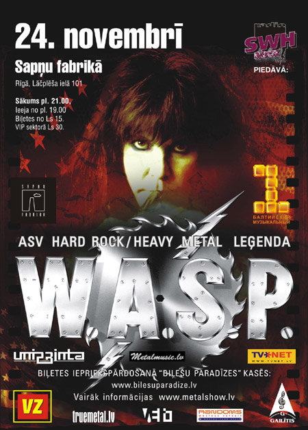 Dažādas smaguma intensitātes mīļotāju ausīm un prātiem briest jauni prieki – leģendārās amerikāņu teatrālā šokroka grupas W.A.S.P. viesošanās mūsu Tēvijā jau pavisam drīz – 24. novembrī Sapņu fabrikā!
