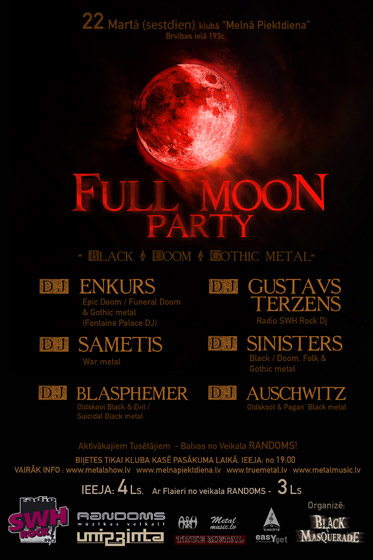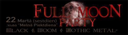 Sestdien, 22.martā klubā "MELNĀ PIEKTDIENA" BLACK MASQUERADE piedāvā: "FULL MOON PARTY" (VILKAČU un VILKU nakts) - Black / Doom / Gothic metal music party.