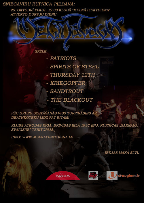 25. oktobrī (sestdiena), sakarā ar 6. gadadienu, grupa SniegaVīru Rūpnīca aicina jebkuru interesentu uz atvērto durvju vakaru klubā Melnā Piektdiena. Vakara tēma – „Metinātava”. Durvis tiks vērtas plkst. 19.00 un būs vaļā līdz pat rītam.