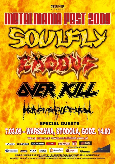 Tātad, 7. martā 2009. gadā Varšavā, “Stodola” klubā ir gaidāms Metalmania fests 2009.