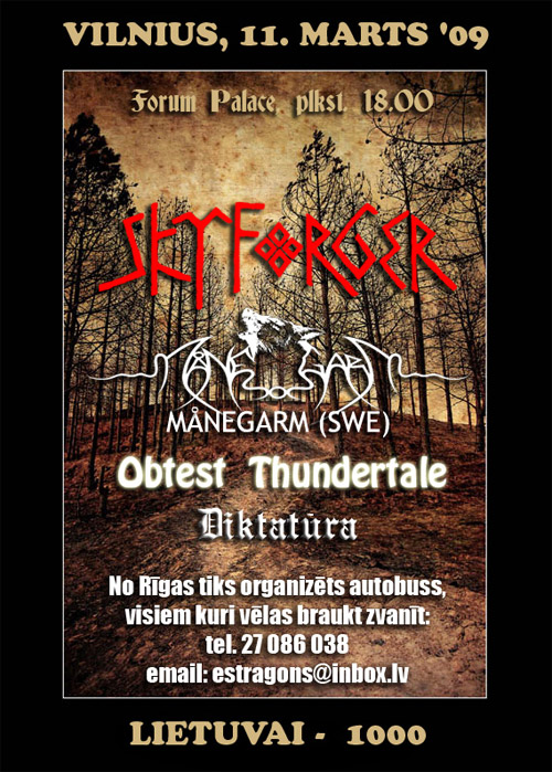 Trešdien, 11. martā, Viļņā notiks kārtējais festivāls “Tėvynei Tūkstantmetis”. Uzstāsies mūsu varoņi SKYFORGER. Ugunīgas polkas spēlēs viena no Somijas populārākajām pagan/folk metāla grupām – Korpiklaani (FIN). Korpiklaani vietā uzstāsies grupa Månegarm no Zviedrijas. Pasākuma uzstāsies arī: Obtest, Thundertale un Diktatura.